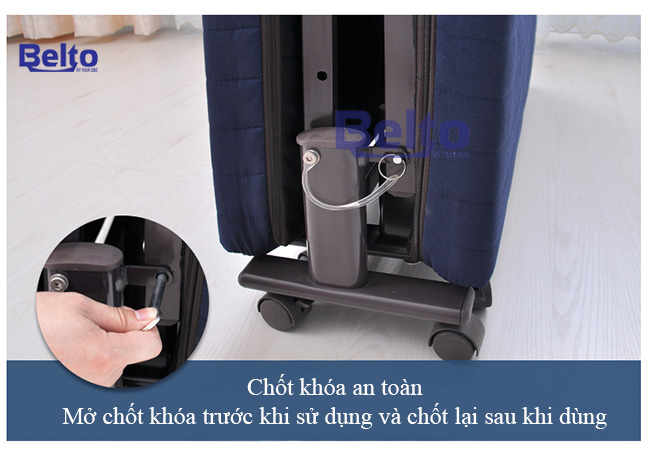 Giường gấp BT-90 có khóa chốt an toàn khi gấp gọn và hoặc khi sử dụng, tiện lợi và an toàn cho người sử dụng