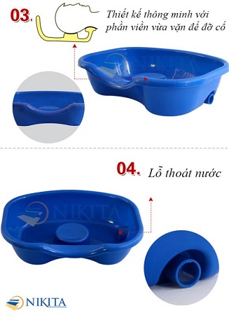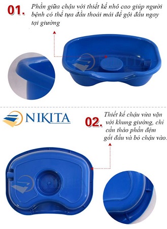 - Giường bệnh nhân NKT-DCN05 có thể tháo rời 1 số bộ phận ở đầu giường và thay thế bằng chậu gội đầu, giúp bệnh nhân gội đầu ngay trên giường bệnh 1 cách tiện dụng.