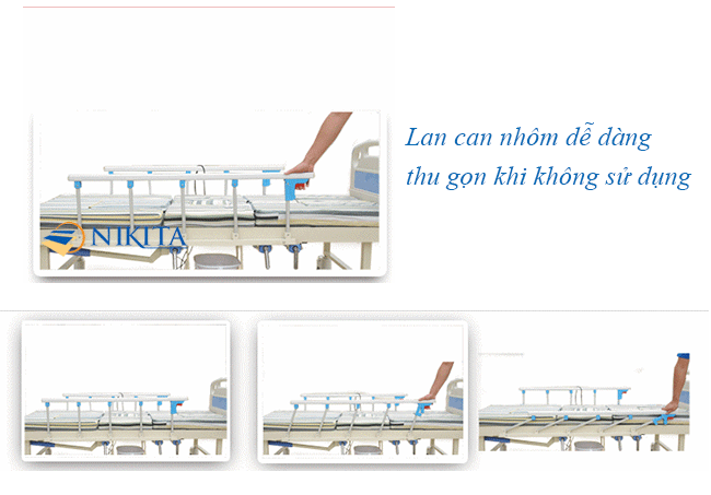 - Tính năng nâng cao đầu người bệnh của giường giúp người bệnh đỡ mỏi, khi dựng dậy ăn hay uống thuốc rất dễ dàng cho cả người bệnh và người chăm sóc.
