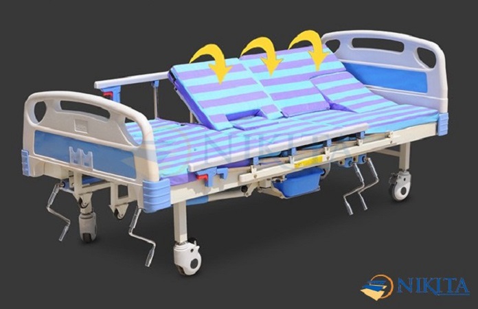 Giường bệnh dạng cơ đa chức năng NKT-DCN05 thiết kế 4 tay quay và 1 tay gạt tương ứng 5 tính năng quan trọng sử dụng chăm sóc, điều trị và phục hồi bệnh.
