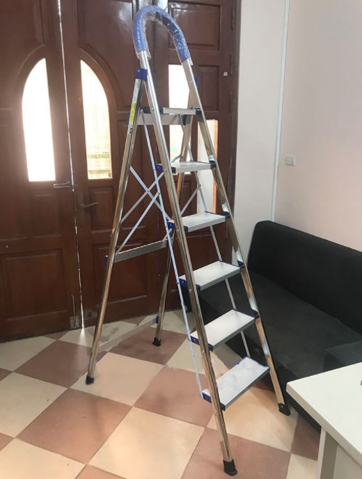 - Khoảng cách giữa hai chân thang có kích thước rộng, có thể đứng vững chắc mà không cần người giữ.