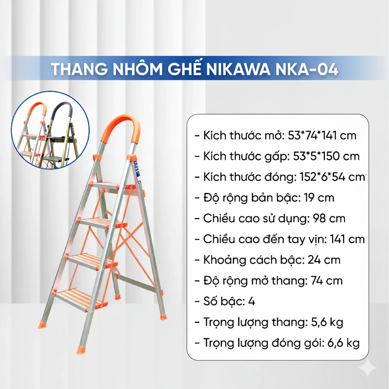 Thang nhôm ghế 4 bậc Nikawa NKA-04