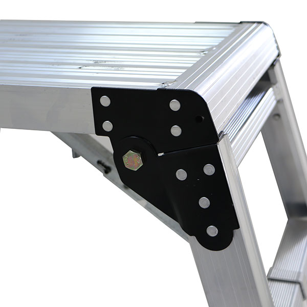 - - Mặt bàn được thiết kế dạng nhôm nguyên tấm, có rãnh chống trượt, tăng ma sát và giúp người sử dụng giữ vững thăng bằng khi thi công ở độ cao vừa phải, kể cả khi di chuyển liên tục giữa các vị trí.