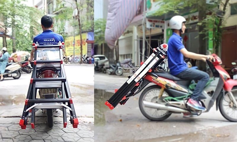 Với thiết kế gọn gàng, thang thuận tiện được đặt sau xe máy, cốp xe ô tô hay cầm tay khi di chuyển.