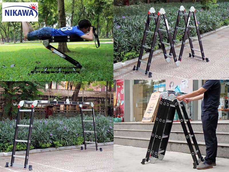 Nhờ thiết kế dạng gấp khúc, thang có thể tùy chỉnh dạng chữ A, thẳng đứng, hay giàn giáo khi sử dụng. Với mỗi hình dạng, thang đáp ứng những nhu cầu, mục đích sử dụng khác nhau.