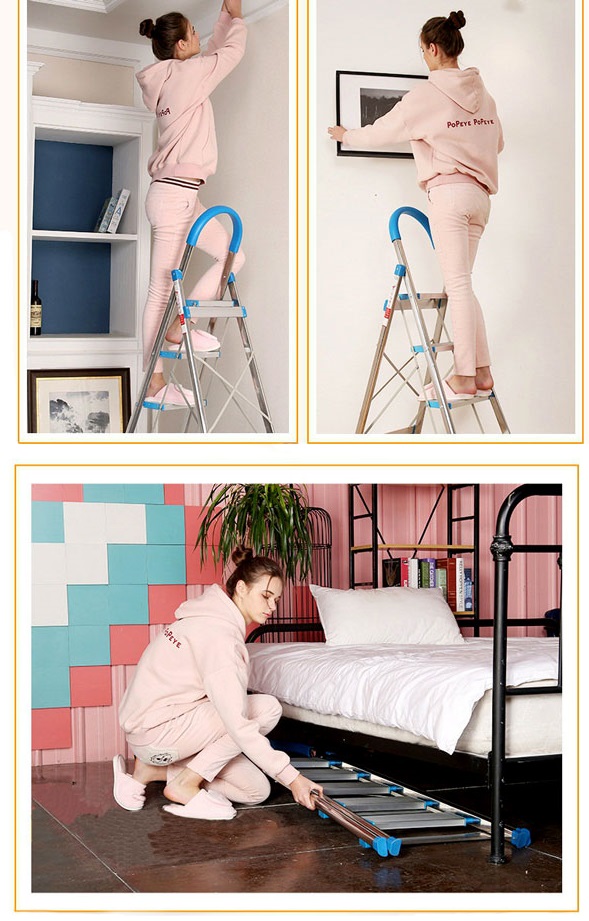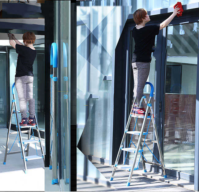 - Thang nhôm ghế bản bậc to thích hợp dùng cho phụ nữ, làm vườn, lấy hồ sơ, thay bóng đèn, lau cửa kính…