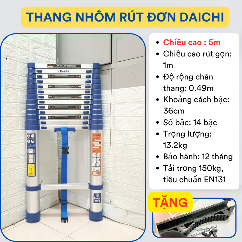 Đánh giá Thang nhôm rút đơn Daichi 5m DA-N50X (TẶNG ỐP)
